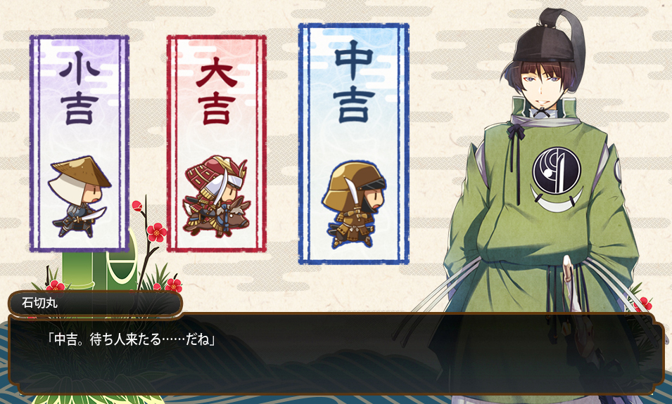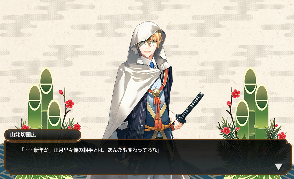 2016/01/02 Category : ゲーム 刀剣乱舞 元旦と二日 公式Twitter確認せずに始めたので新年早々びびった刀剣乱舞です。リアルに「え……?」ってなった。笑 連隊戦でほぼ固定部隊になってるんですが再ログインに合わせてウチの初期刀に。もちろん初期刀贔屓です。元旦景趣・申年飾りは身長の関係と現在近侍で骨喰で。近侍にすることで再ログインせずに新年の挨拶台詞は再生可能。多分、4日の次回メンテまでは聴けるんじゃないかなぁ…と予想。二日は二回目ログインから、新年の挨拶ログイン。二回目ログインから新年挨拶ログインと思ってたんですが勘違いだったかも…スミマセン。こちらは二日の初回限定。こちらも公式確認してなかったのでびびった。中吉だったんですがおみくじで左右するのは刀装のみでしょうかね? 二日景趣・書初めの祝日休日感…。台詞聴いてて思ったけどやっぱ全本丸、出陣・任務お休みって設定なのかなぁ。 PR Comment0 Comment Comment Form お名前name タイトルtitle メールアドレスmail address URLurl コメントcomment パスワードpassword