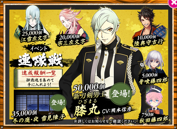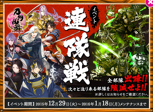 2016/01/02 Category : ゲーム 連隊戦/易ステージ 連隊戦始まりましたね。出遅れで昨日から始めました。 ガリガリ周回して只今10000個突破です。連休中に50000個いってしまいたいんですがね…いけるかなぁ。 ▼こちらから獲得ポイントメモです。只今育成中。